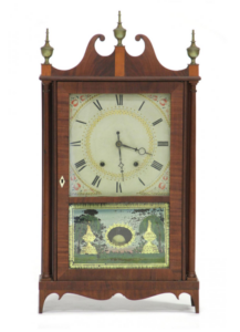 Eli Terry, Native of East Windsor, Ct who apprenticed under Windsor clockmaker Daniel Burnap, pioneered using interchangeable wooden parts to produce the first ever affordable clocks in the early US. His “Pillar & Scroll” clocks went a step farther and featured standardized decorative pillars, a scrolled top, painted dial and a reverse painted (églomisé) glass decorative scene. Join Chuck Bender as we build a replica of these iconic shelf clocks. Everyone’s basic clock will be the same but the decorative elements- bandings, inlay, scroll work, etc- is only limited by your imagination! As an added treat we will visit the Yale Furniture study in West Haven, CT to check out their collection of originals. Due to the variety of options in accessing the works , the clock dial and the reverse painted glass panel, the materials fee will not include these items. We will assist everyone in procuring the necessary hardware but there is such a range of options and expense that these decisions are better left to each participant. Class will meet over two 3- day weekend for a total of six days of class time. The case will be made in mahogany unless you want to utilize a different species (please contact Bob Van Dyke bob@schoolofwoodworking.com.