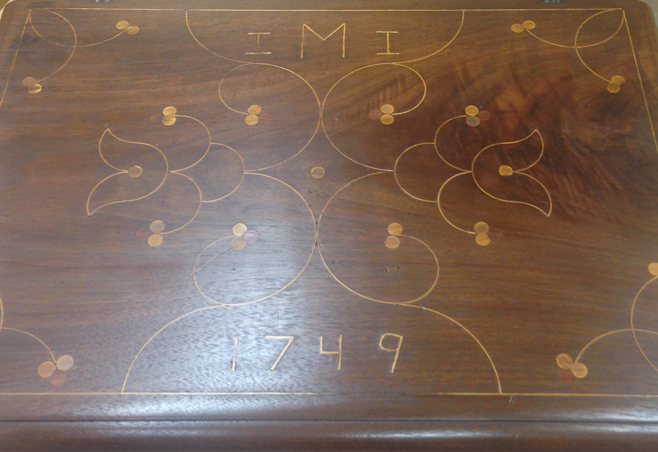 Document boxes were an essential part of nearly every 17th and 18th Century home. Often they were used as a portable home safe. Although many were plain, others were showcase pieces for their owners. Our Line & Berry Inlaid Document Box falls into the latter category. Your box will undoubtedly be the focal point of any room.